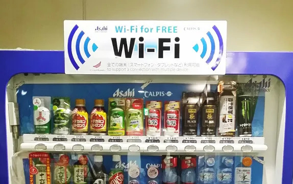 朝日饮料的自动贩卖机,在2012年推出了日本第一款配备WiFi功能的自贩机,使自动售货机周围的区域成为免费的Wi-Fi站点。