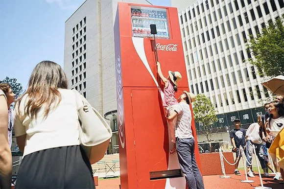 可口可乐在许多国家都出过“奇葩”的自贩机,比如拥抱自贩机,只要拥抱这台自贩机就可以喝到一瓶饮料。