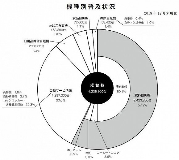 日本自动贩卖机各种类占比,图片来源:日本自动贩卖系统工业协会