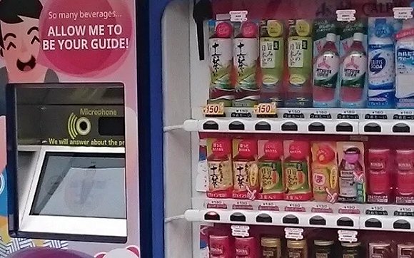 此外在2016年1月,朝日饮料在东京浅草的Kaminarimon附近实验性地安装了一台交互式自动贩卖机,该机以英语提供详细的产品信息,为外国游客推荐产品,并介绍附近景点,具有日常交谈的感觉。