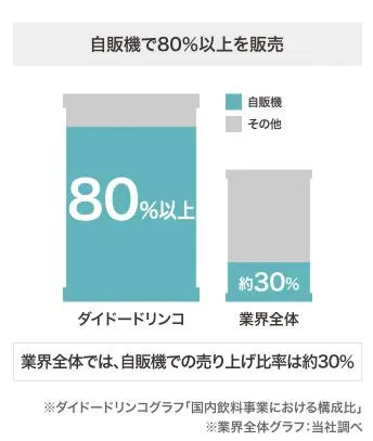 DyDo DRINCO和饮料行业关于自贩机销售额占比的对比,图片来源:DyDo DRINCO官网